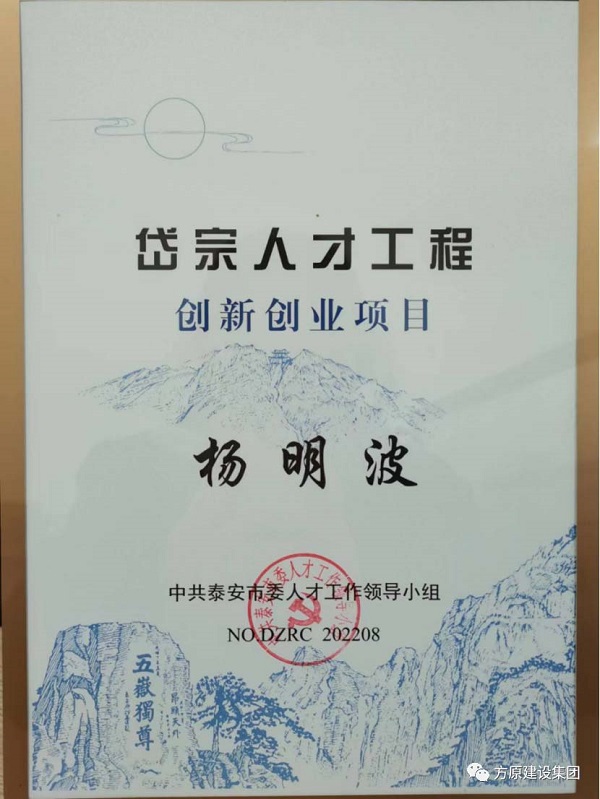 公海赌赌船官网jc710集团山东铁鹰建设工程有限公司董事长杨明波同志凭借其卓越的创新成果和创业成就,成功通过了泰安市岱宗人才工程创新创业项目的评审!本项目全市共8人通过评审,岱岳区仅杨明波同志1人通过。