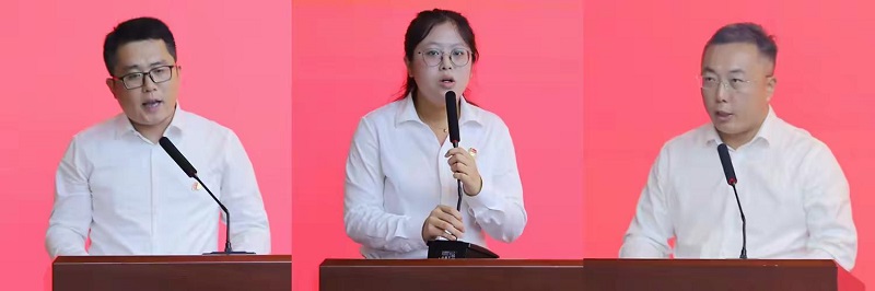 主题会上,优秀党员代表、项目第四党支部委员、钢结构事业部项目经理宁吉凯;优秀党员代表、行政第一党支部委员、财务部员工赵祥君;入党积极分子代表、A1项目经理白代柱表态发言 。