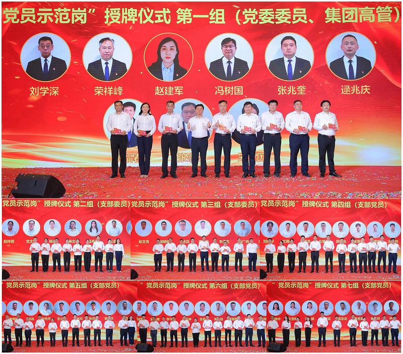 党委书记、董事长杨明波和党委委员为荣获“党员示范岗”的 69名党员授牌