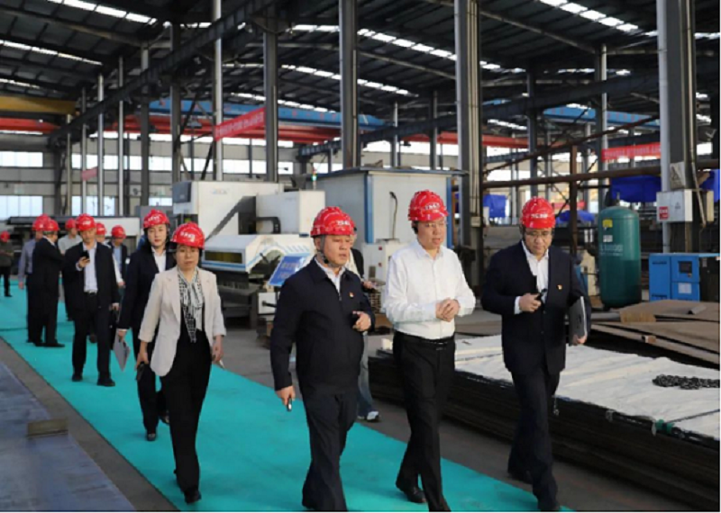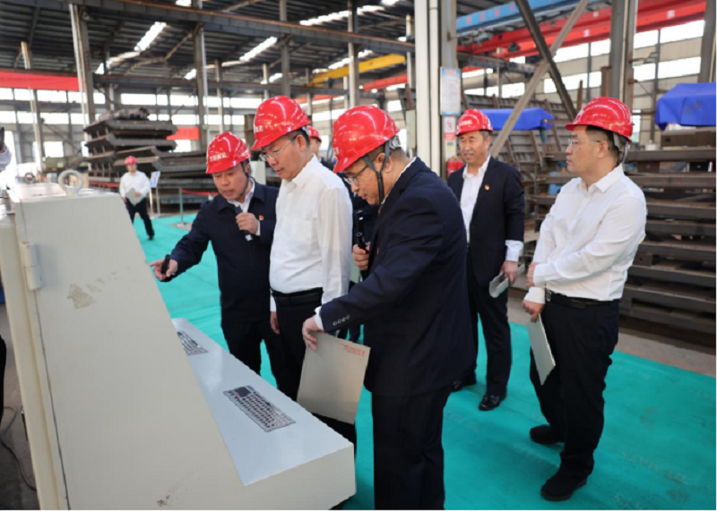 冯能斌副市长一行听取了杨明波董事长关于企业发展情况的汇报,深入车间详细了解了企业自主研发的智能化桥隧衬砌台车、高铁900吨液压大箱梁、液压挂篮、液压栈桥等智能化工程特种装备产品,对企业在细分领域和产业链强链补链中的关键重要作用给予充分肯定,鼓励企业要不断加大研发投入,推动技术进步和产业升级,推动数字化、智能化、绿色化转型,实现经济效益和社会效益的双赢,以提升核心竞争力和长远发展潜力。