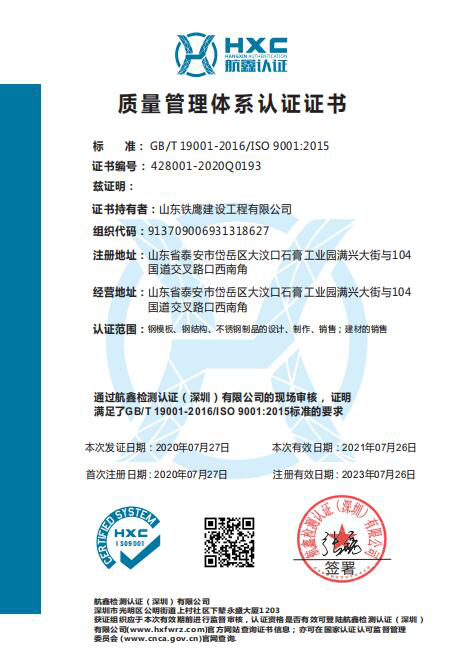 2020年7月19日,我公司ISO9001质量管理体系的审核圆满结束,质量管理体系认证证书的取得,是公司各项管理工作的规范化、标准化的全面检测,是对公司持续稳定健康发展的重要保证。欢迎来到公赌船jcjc710[中国区]股份有限公司将进一步优化和规范各项管理制度,不断提高体系运行的有效性,不断提高公司的管理水平,共同推进公司的快速发展。